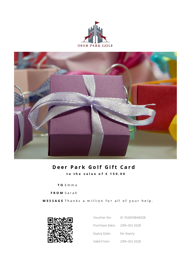 Deer Park Golf allows you to purchase instantly printable gift vouchers, special offers and tickets using the Voucher Connect platform.